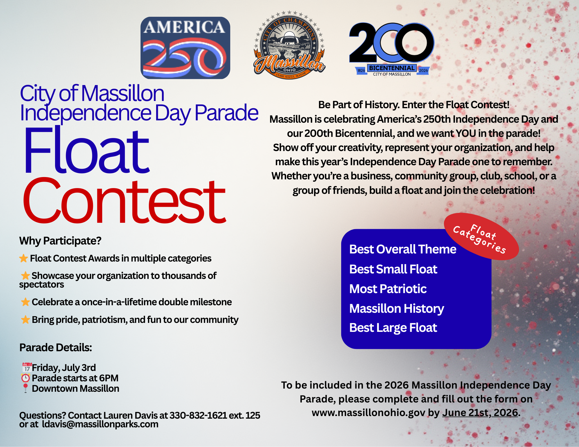 Massillon is gearing up to celebrate its 200th year in 2026! As the city marks this historic bicentennial milestone, plans are underway for a year filled with community events, special tributes, and opportunities to honor Massillon's rich history and bright future.